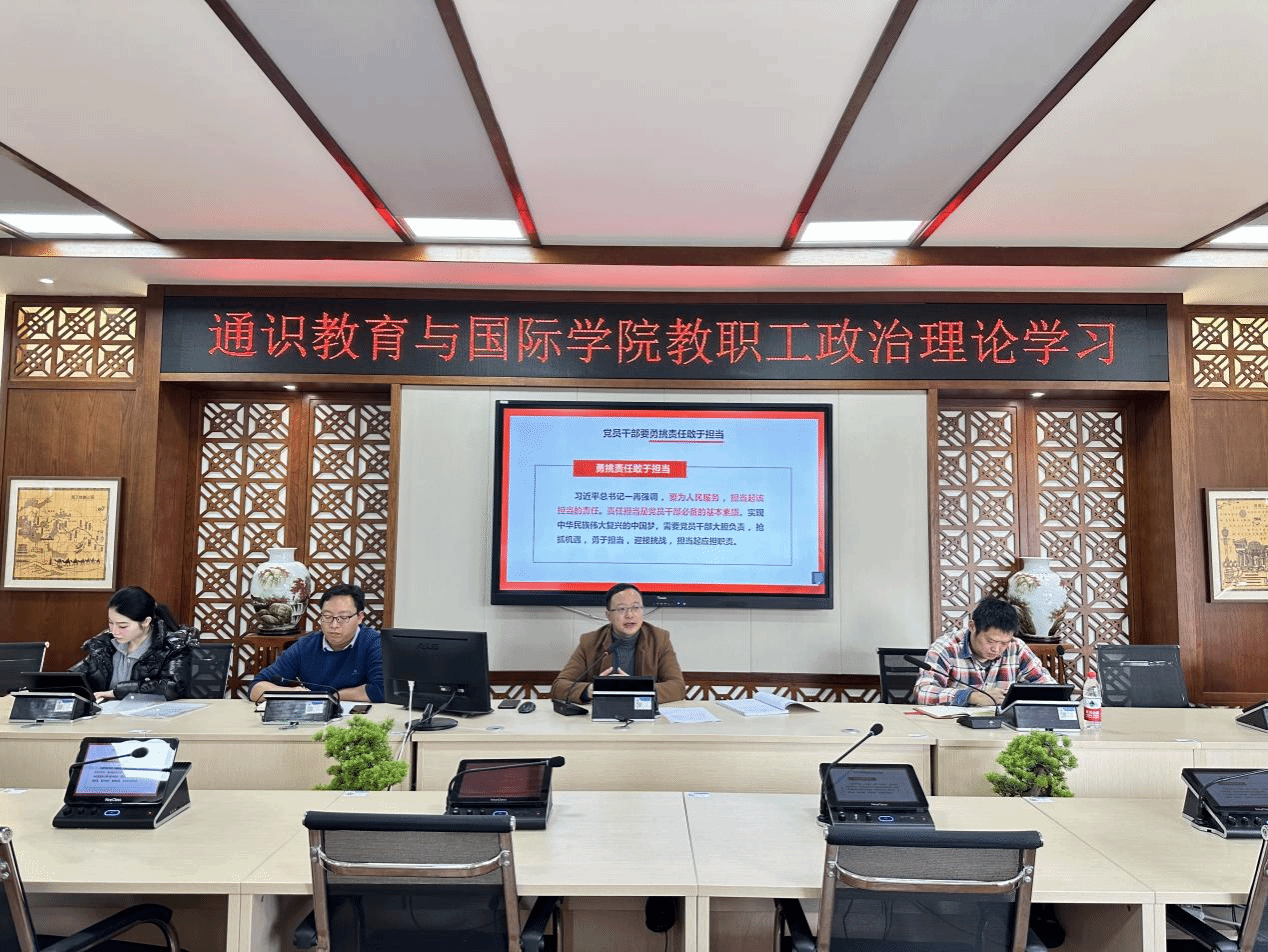 2024年11月28日,通识教育与国际学院2307丝路国际会议室开展了11月教职工政治论学习。此次会议由沈雕同志主持,全体教职工参加。